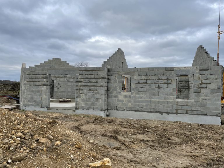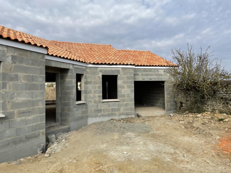 Construction d’une maison neuve au Vaudelnay en 2022.